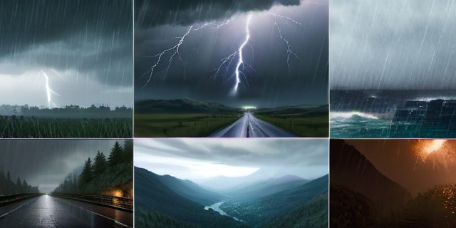- Молнии в небе на фоне широких пейзажей.