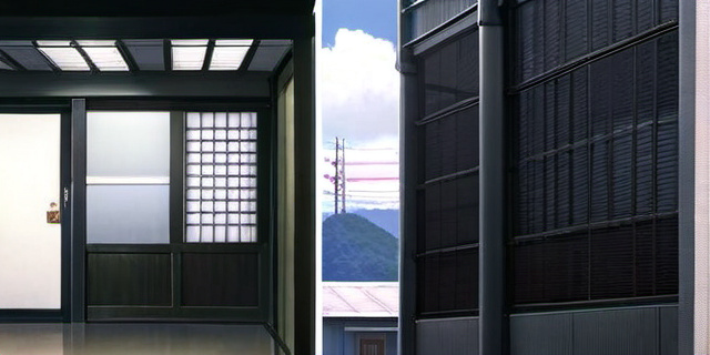 - Западный пример: Doki Doki Literature Club! — умеренно стилизованные, но максимально приближённые к реальности интерьеры японской школы, с использованием фотоманипуляций.